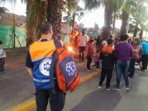 El equipo está conformado por médicos, paramédicos y enfermeros entrenados para intervenir con rapidez y eficacia en contextos de concurrencia masiva, junto con un coordinador operativo exclusivo presente durante todo el evento. En situaciones de alta afluencia de público o en espacios de gran extensión, se incorporan paramédicos adicionales, cada uno provisto con mochila de primeros auxilios.